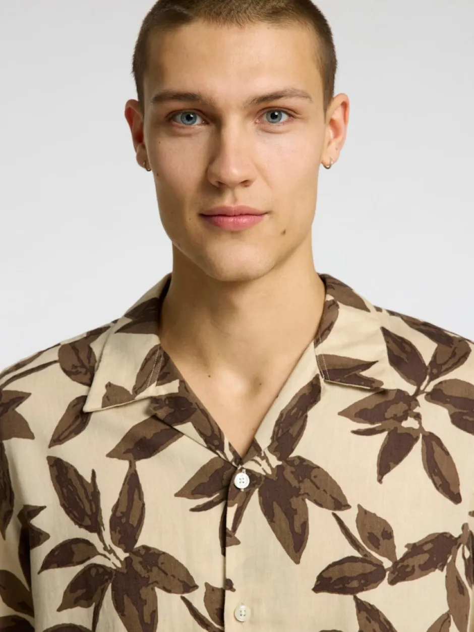 – Levitetty kaulus – Edessä napitus – Lyhyet hihat – Painettu muotoilu – Valmistettu pellavasta – Normaali istuvuus