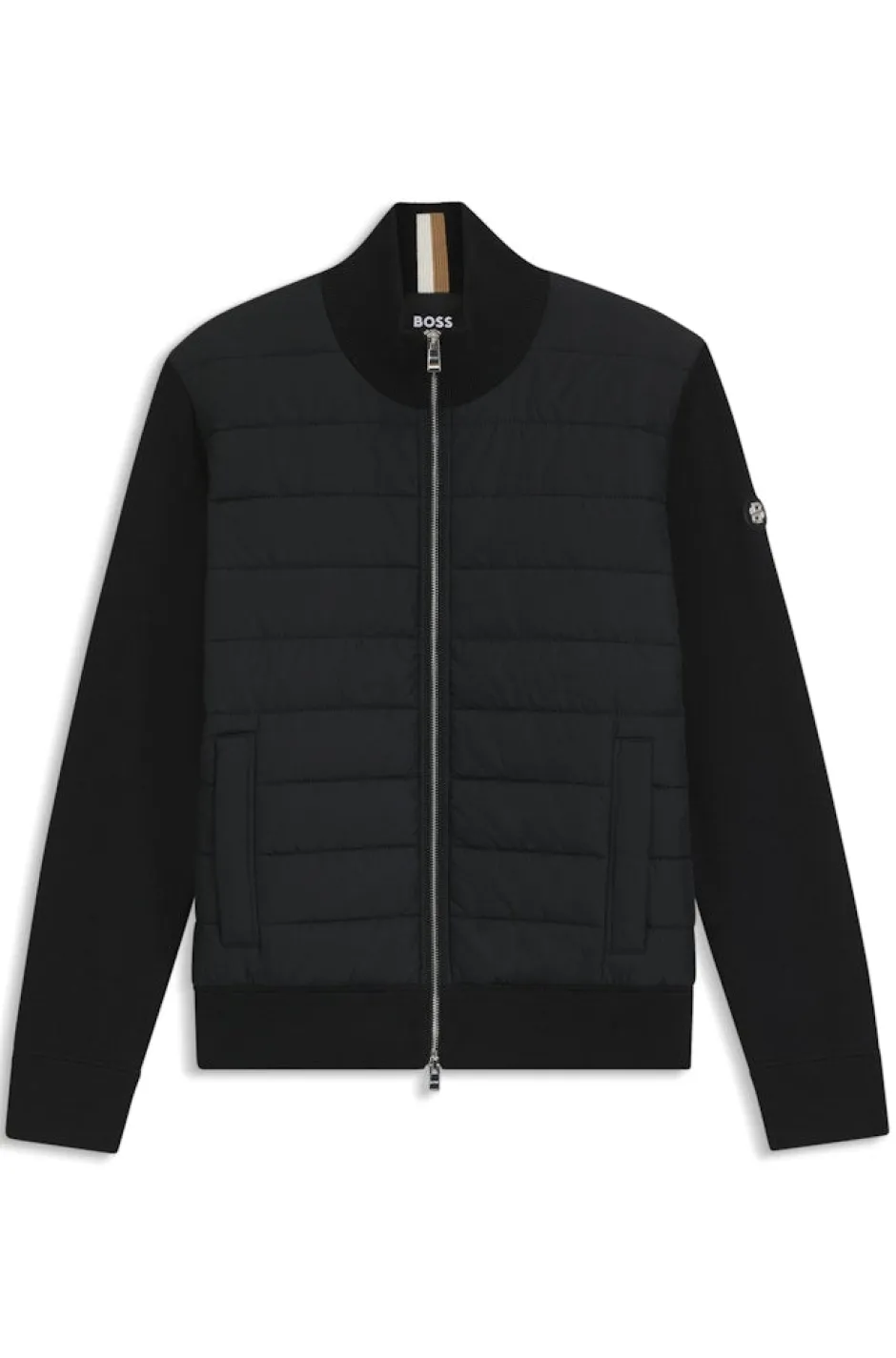 Lämmittävä BOSS Menswear -takki, ihanteellinen kerrospukeutumiseen. Valmistettu pehmeästä villa-puuvillasekoitteesta, jossa on kontrastivärinen topattu etuosa. Mukavat ribbineulotut reunukset. Tämä tuote sisältää vähintään 60 % parempia raaka-aineita. Tämä tuote on valmistettu osittain luomupuuvillasta. Luomustandardimme eivät salli synteettisten lannoitteiden, torjunta-aineiden tai geenimuunneltujen siementen käyttöä.