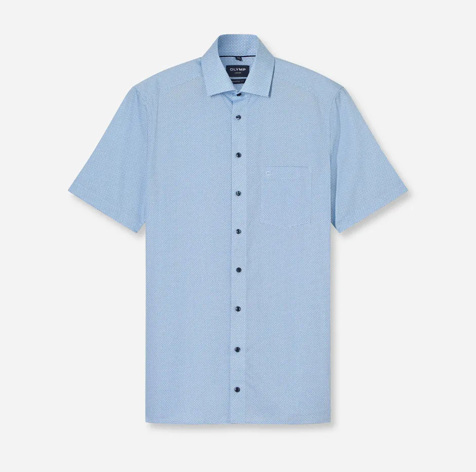 OLYMP Luxor Modern Fit -kauluspaita yhdistää klassisen muotoilun ja modernin istuvuuden, tarjoten täydellisen valinnan niin työpäivään kuin juhlatilaisuuksiin. Sen hienostunut sininen sävy ja hillitty kuviointi tuovat asuusi ripauksen eleganssia.
