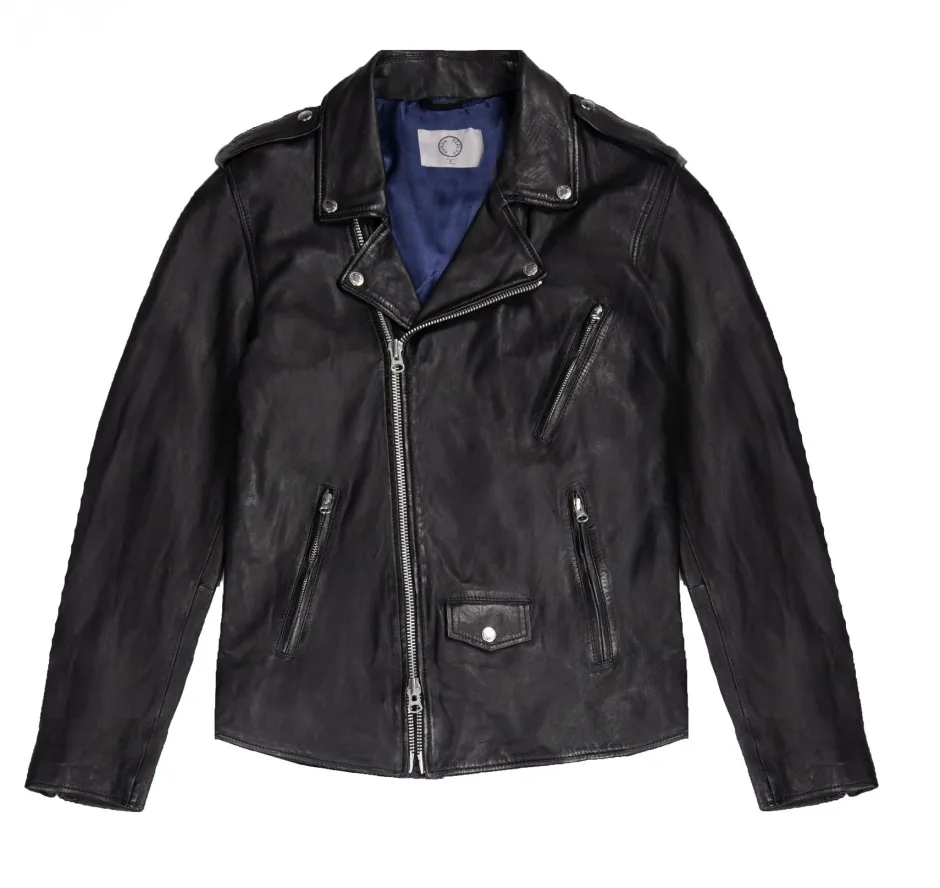 Adam Biker nahkatakki valmistettu hienosta kasvisparkitusta lampaannahkasta. Laivastonsininen satiinivuori ja hopeanväriset YKK-vetoketjut. Tämä takki on kooltaan normaalia.