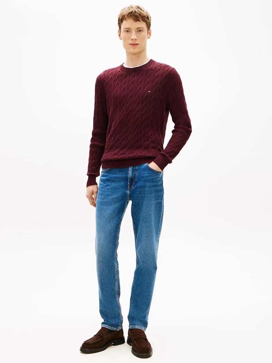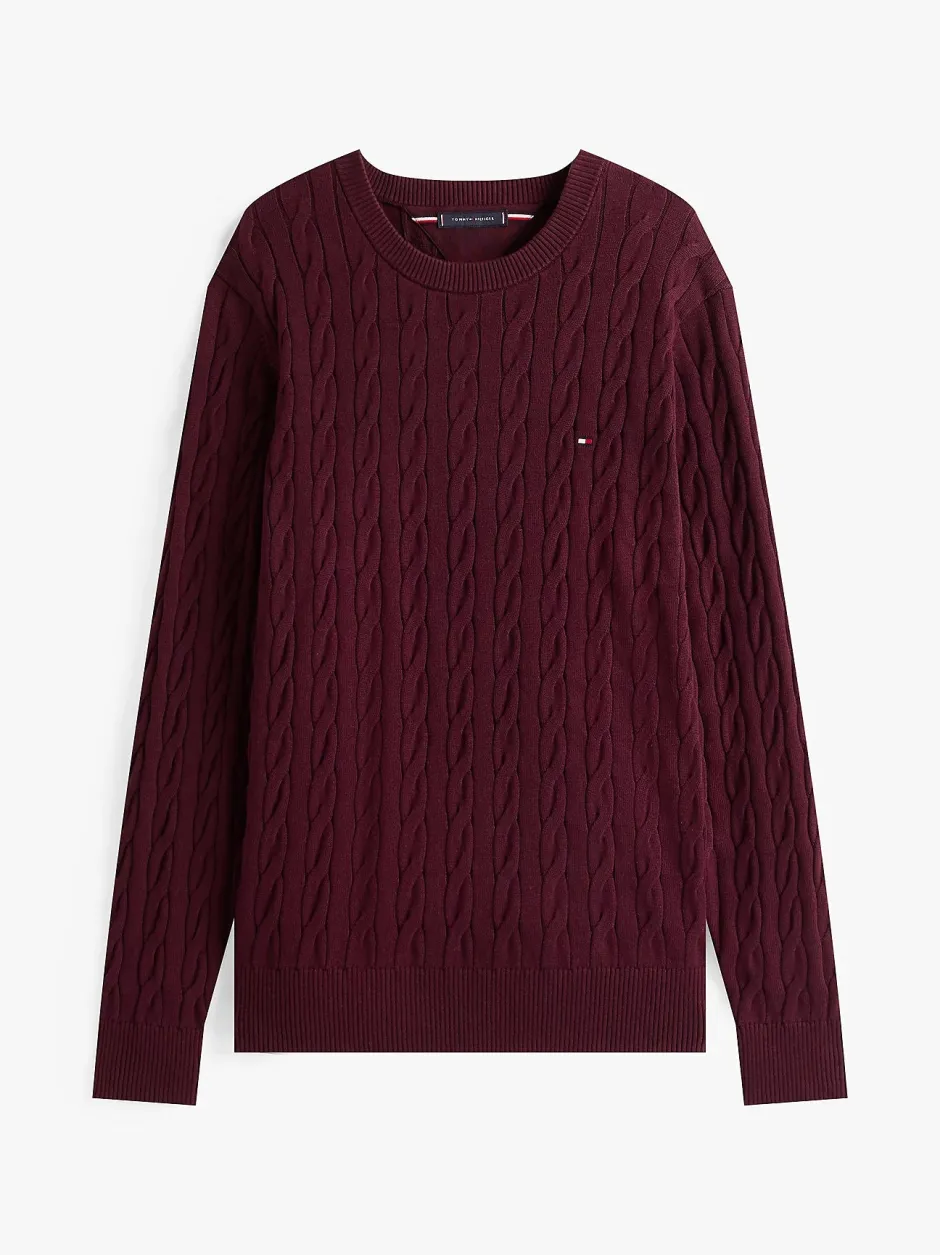 Tommy Hilfigerin laadukas ja klassinen miesten neulepusero 100% puuvillaa. Neulepaidassa on pitkät hihat, pyöreä pääntie, regular fit -istuvuus sekä pinta tyylikästä kaapelineulosta. Hihansuissa, pääntiellä ja helmassa joustinneulosta. Tyylin viimeistelee Tommy Hilfigerin logo rinnassa.