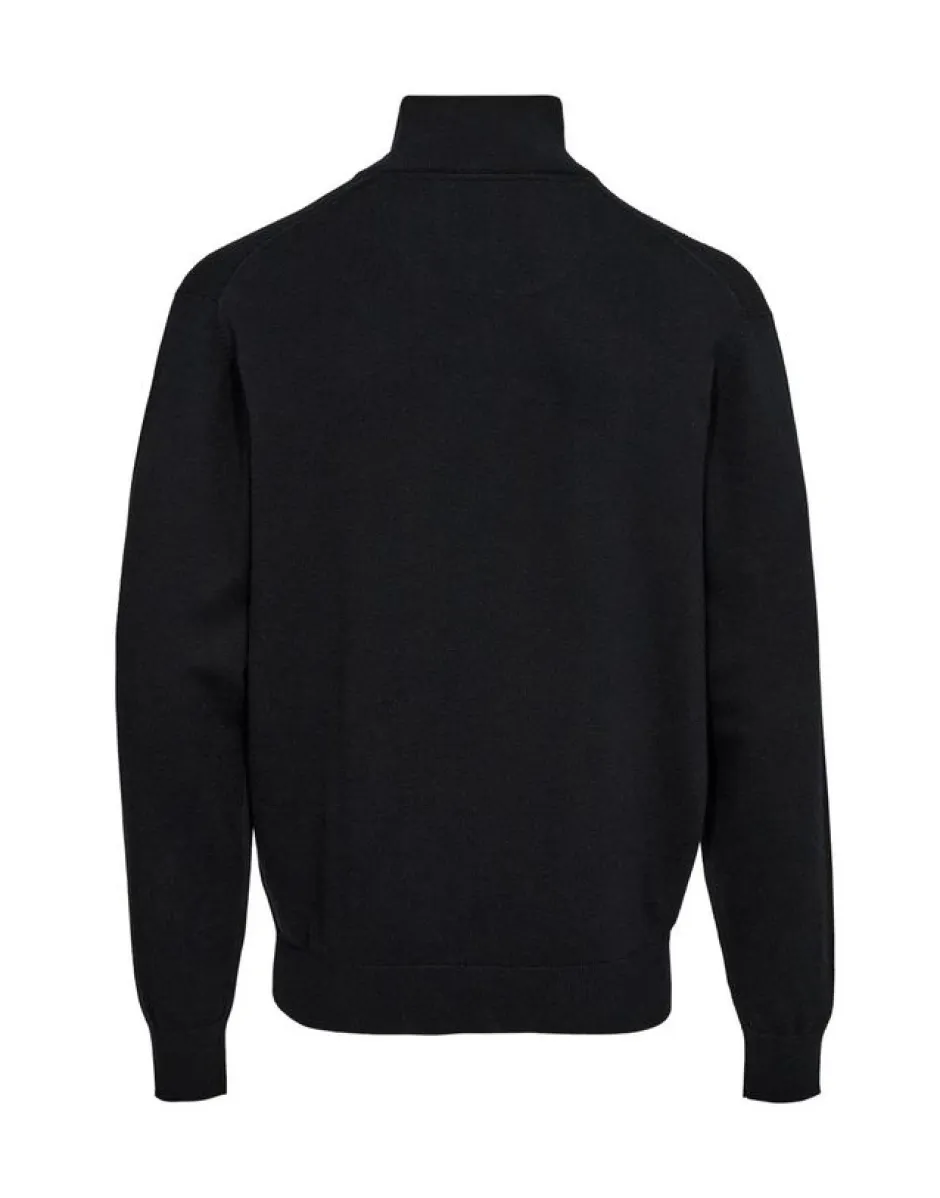 Tämä tummansininen miesten neulepusero half zip -vetoketjulla yhdistää käytännöllisyyden ja tyylin. Neule on monikäyttöinen ja sopii sekä rentoon että smart casual -tyyliin. Säädettävän vetoketjun voi avata kokonaan rennomman ilmeen luomiseksi.