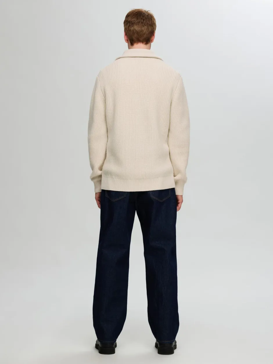 Mieste neulepusero ns. patenttineuletta, jossa korkea kaulus puolivetoketjulla .