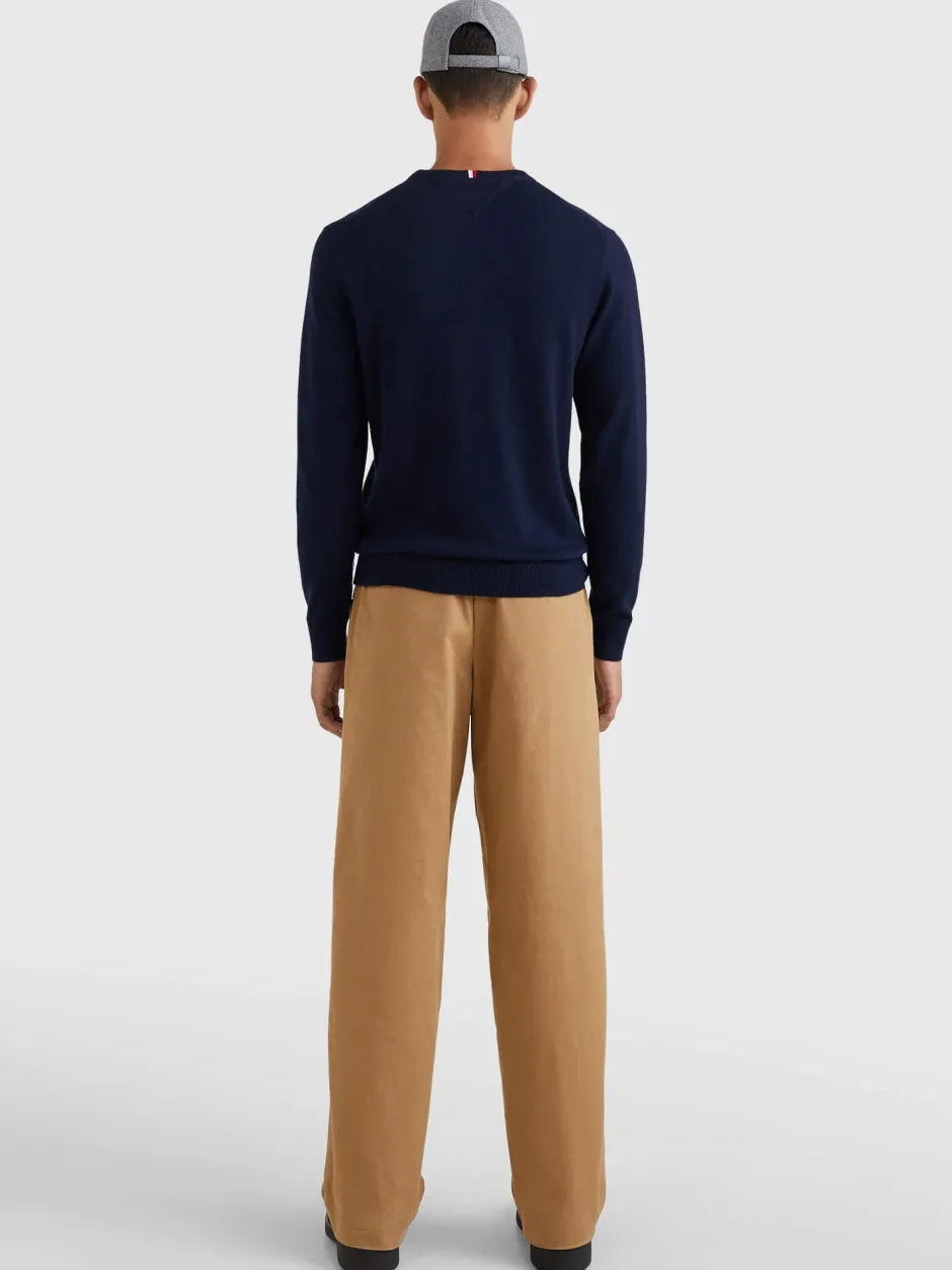 Tommy Hilfiger miesten kashmirsekoitteinen neulepusero. Pyöreä pääntie, ribbineulottu kaulus, hihansuut ja helmat. Normaali istuvuus. Rinnassa Tommy Hilfiger lippukirjonta
