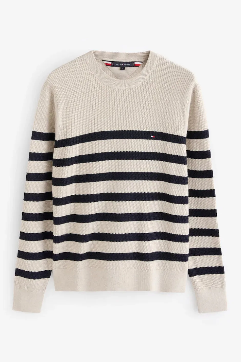 Tommy Hilfigerin tyylikäs raidallinen neule. O-pääntie ja regular fit istuvuus