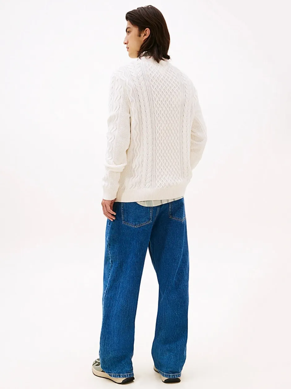 Tämä neulepusero yhdistää kapean istuvuuden klassiseen palmikkoneuleeseen, luoden näyttävän ja ajattoman ilmeen.