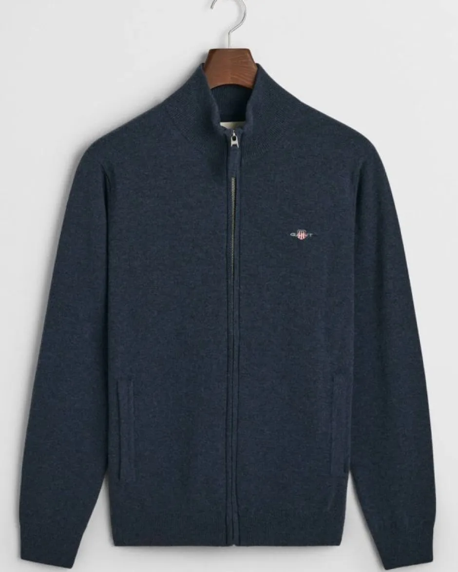 Indigo Cotton Structure Crewneck -neuletakki, jossa on GANT-brodeerattu merkki helman lähellä ja resori kaulus-, helmassa ja hihansuissa.