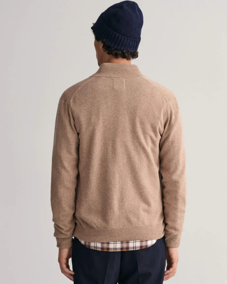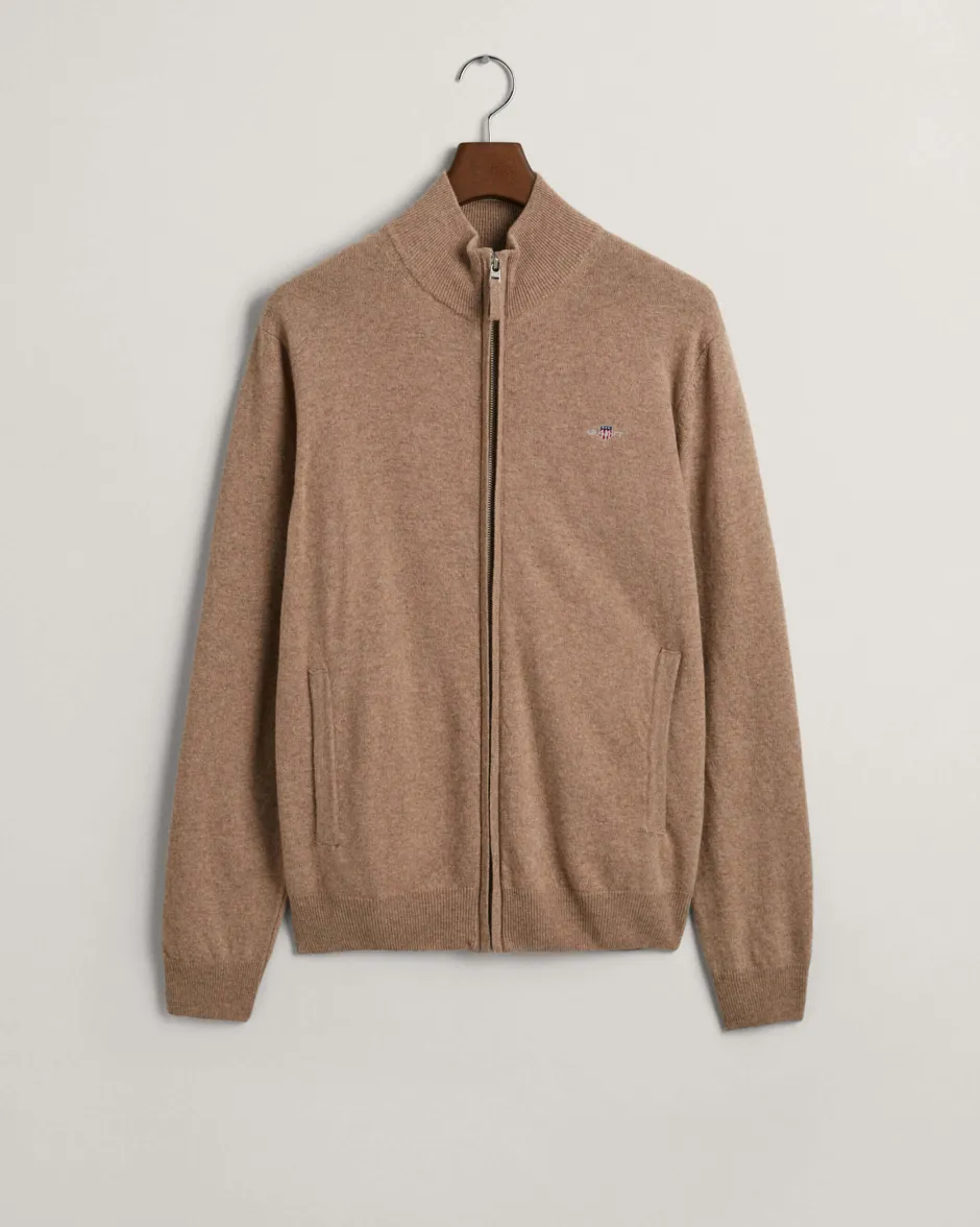 Indigo Cotton Structure Crewneck -neuletakki, jossa on GANT-brodeerattu merkki helman lähellä ja resori kaulus-, helmassa ja hihansuissa.
