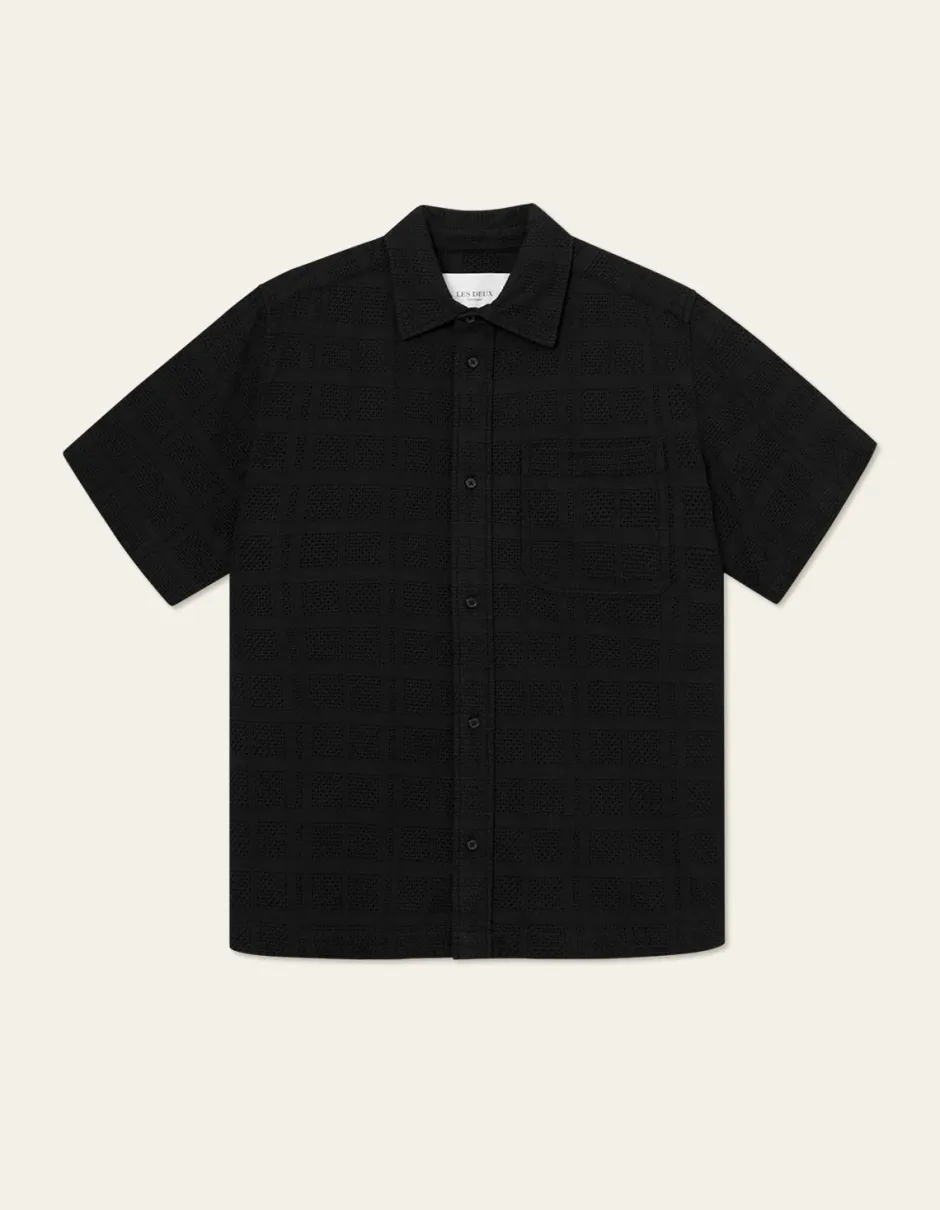 – Klassinen kaulus – Kätevä rintatasku – Regular fit, lyhyet hihat – Näyttävä anglaise-kangas.