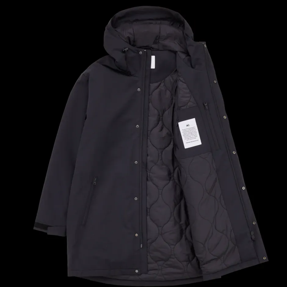 Makian tyylikäs pitkä regular fit parkatakki. – 5000mm vesipilari – Joustava säätönauha hupussa – Tarranauha hupussa ja hihansuissa – 2-suuntainen vetoketju ja painonapillinen läppä – Etutaskut YKK-vetoketjuilla ja fleecevuorilla – Sisäinen rintatasku YKK-vetoketjulla ja fleecevuorilla – Vyötärön säätönaru vuorin puolella – Brodeerattu lippulogo oikeassa hihansuussa, Makia-silikonimerkki vasemmassa hihassa, ”Through the rough seas” -brodeeraus tuulilistassa