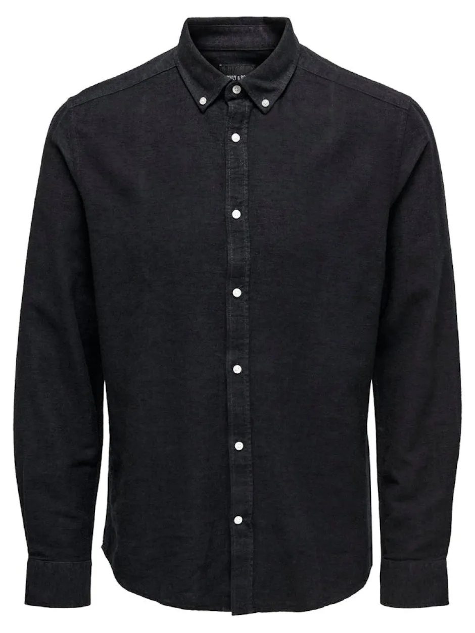 Only&Sons viileä ja kevyt pellavasekoitepaita. Paidassa on nappikiinnitys. Kauluksessa kulmanapit. Kaarrettu helma.