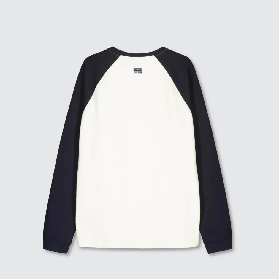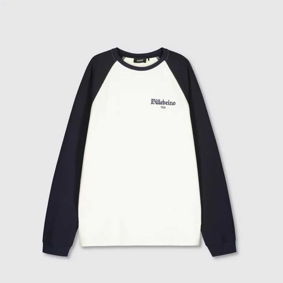 Tässä pitkähihaisessa baseball-paidassa on raglanhihat, resoripääntie ja hihansuut, ja sitä koristaa Billebeino TEN -tekstikirjonta edessä rinnassa ja Brick-kirjonta takana kaulassa.