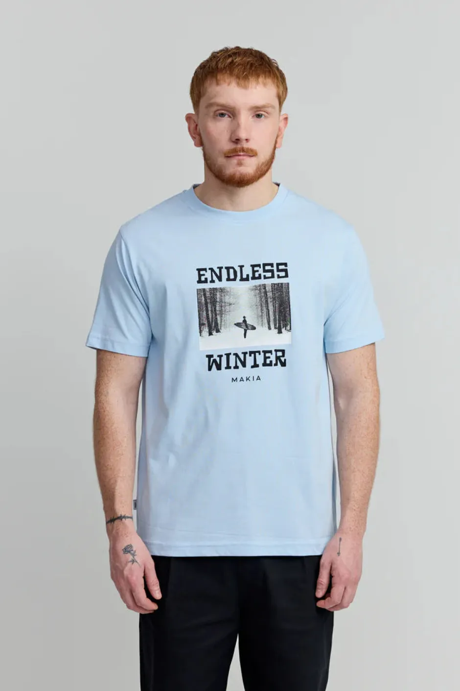 Makia Endless T‑Shirt on ajaton ja mukava lyhythihainen paita, joka toimii erinomaisesti arki‑ ja vapaa‑ajan asuissa. Valmistettu pehmeästä 100 % puuvillasta, tämä T‑paita tuntuu miellyttävältä ihoa vasten ja hengittää hyvin. Pyöreä pääntie ja klassinen leikkaus tekevät paidasta helpon yhdistää farkkujen, shortsien tai chinojen kanssa. Tyylikäs vaaleansininen sävy tuo raikkaan ilmeen, joka sopii niin yksinään kuin kerrospukeutumisen osana käytettäväksi.