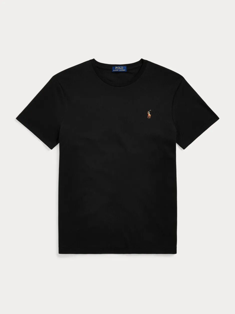 Polo Ralph Laurenin musta t-paita on valmistettu 100 % pehmeästä puuvillasta, joka tarjoaa hengittävän ja miellyttävän käyttökokemuksen. Klassinen pyöreä pääntie, lyhyet hihat ja regular fit -istuvuus tekevät siitä monikäyttöisen arjen luottovaatteen. Pienikokoinen, tunnistettava Polo Pony -logo rinnassa viimeistelee ikonisen ilmeen.