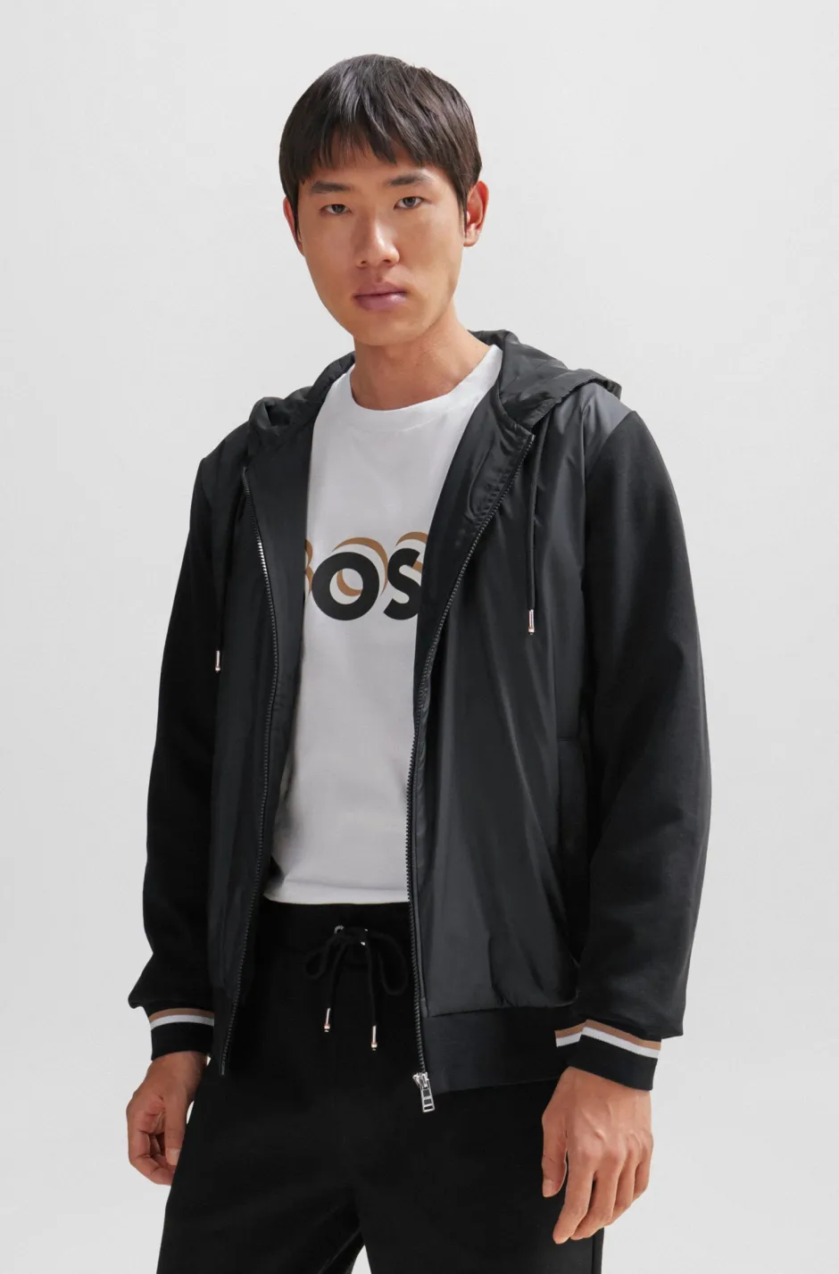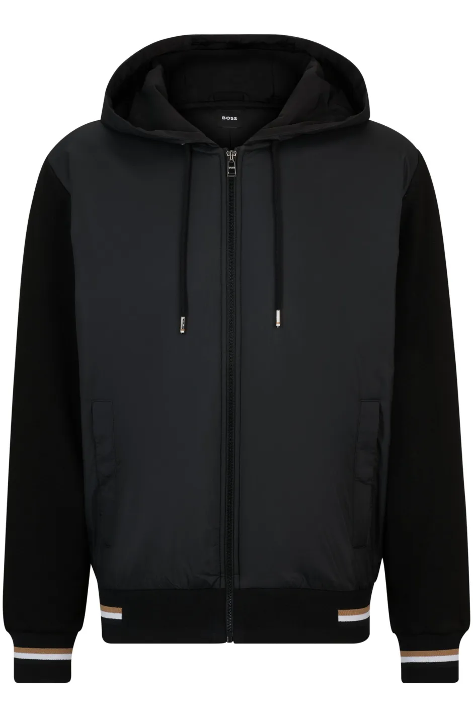 BOSSin regular fit hybriditakki, viimeistelty kontrastiraidoilla.