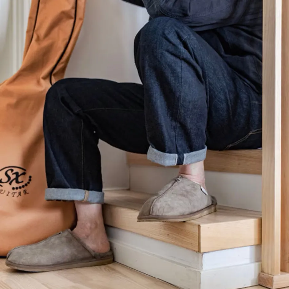 Shepherd of Swedenin miesten lampaannahkaiset kotitossut sopivat täydellisesti rentoihin koti-iltoihin ja aamun lempeisiin hetkiin. Tohveleissa on helposti jalkaan sujahtava slip-in -malli sekä kevyt ja kestävä EVA-ulkopohja.