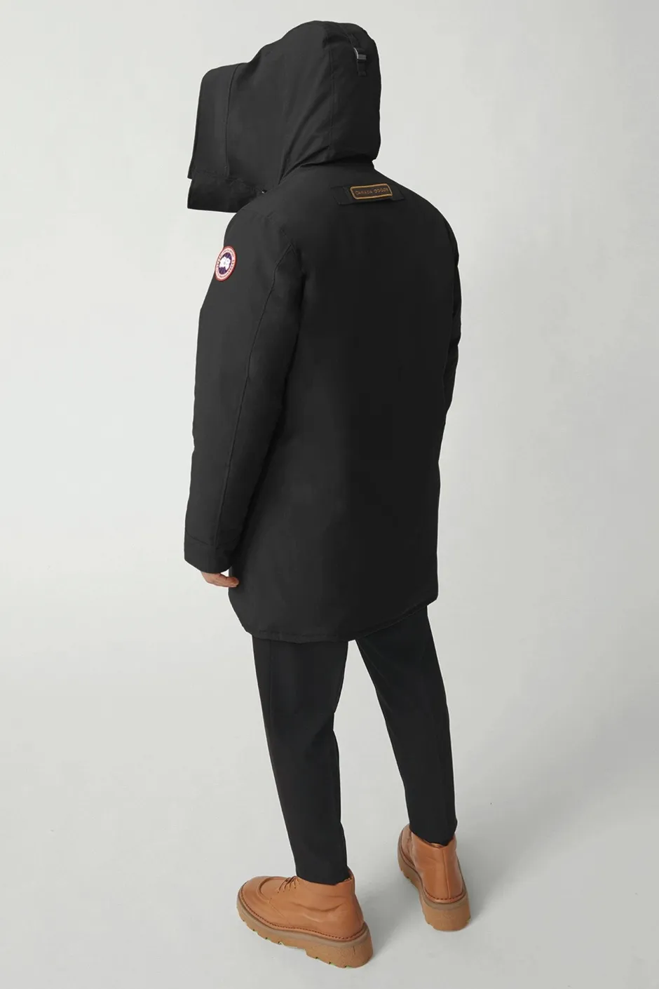 Canada Goosen Langford -parkatakki on keskipitkätalvitakki talven kylmiin keleihin. Parkatakki on loistava valinta talviseen kaupunkiulkoiluun tai lumisille luontopoluille. Langford-parkan päällikangas on varustettu hylkivällä ja kestävällä Artic Tech polycotton -kankaalla, joka suojaa sinua tuulelta sekä kosteudelta ja kestää äärimmäisetkin olosuhteet. Neljä reilunkokoista läpällistä taskua joiden sivuissa vetoketjulliset lämmittelytaskut fleece-vuorella. Vahvat vetoketjut, kaksi sisätaskua, sisäpuolella lumilukko ja vyötärön sisäpuolella nyörikiristys. Säädettävä huppu. Langford on loistava investointi, jonka kanssa kestää talven kylmät säät – ilman palelemista. Kun kaipaat oikeasti lämmintä talvitakkia, se on tässä. Canada Goose Langford parka on lämpöluokassa 4 kestää kovemmatkin pakkaset -15°C / -25°C