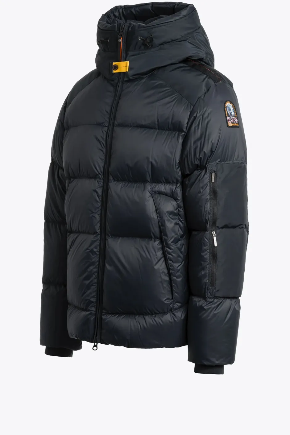 -Parajumpers-logomerkki hihassa ja ikoninen keltainen nauhakiinnitys kauluksessa