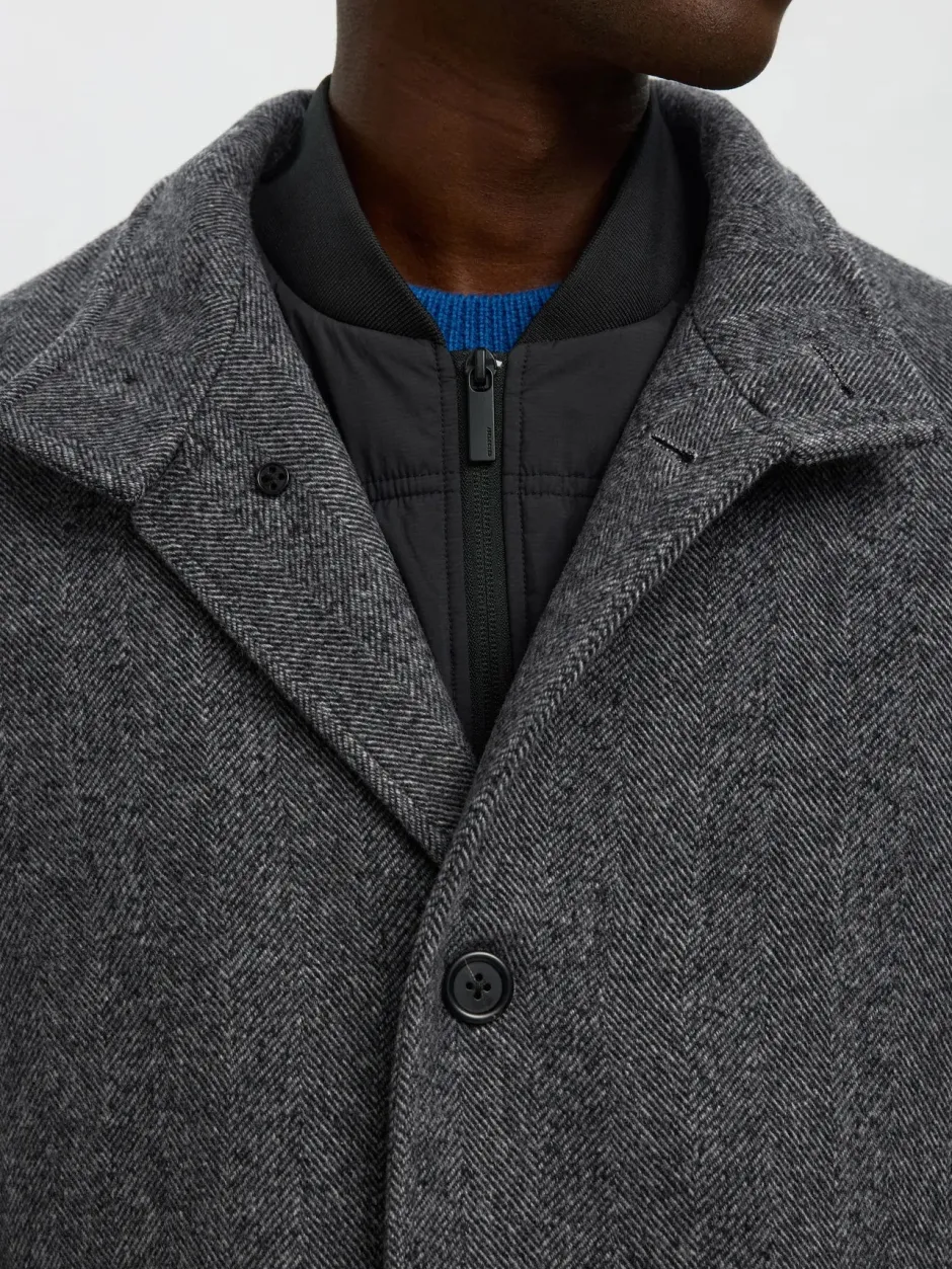 Vuorimateriaali: 100% polyesteri; ulkokangas: 50% villaa, 45% polyesteriä, 5% muita kuituja