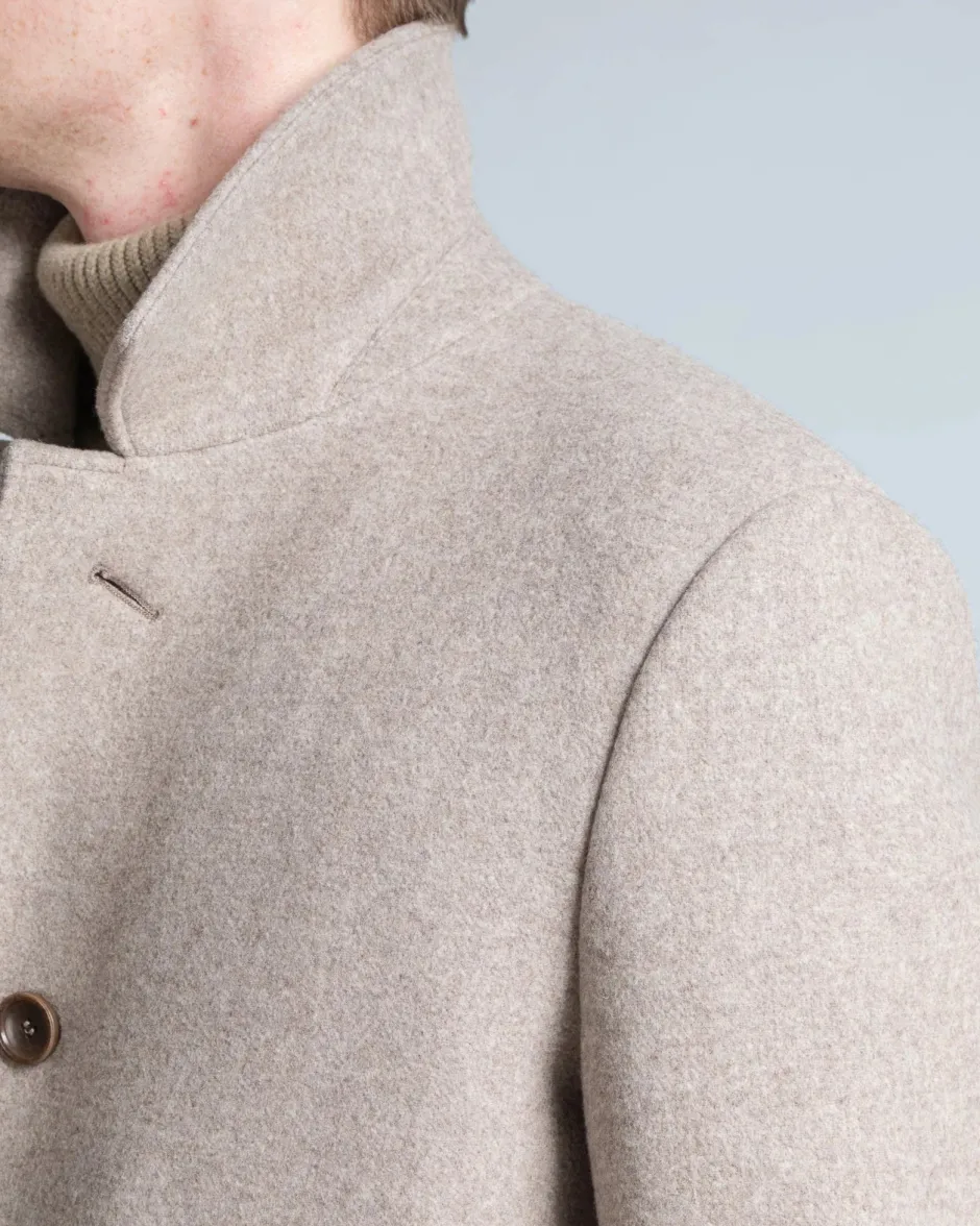 Vaaleanbeige polvipituinen päällystakki välikauden viilenevään säähän. Tyylikäs ja rento jokapäiväiseen käyttöön soveltuva takki, joka antaa lämpöa ja pitää jonkin verran myös tuulta. Kankaassa on villan lisäksi myös mm. kashmiria. Tämä vuoriton takki sopii tyyliltään myös elegantinpaan kokonaisuuteen.