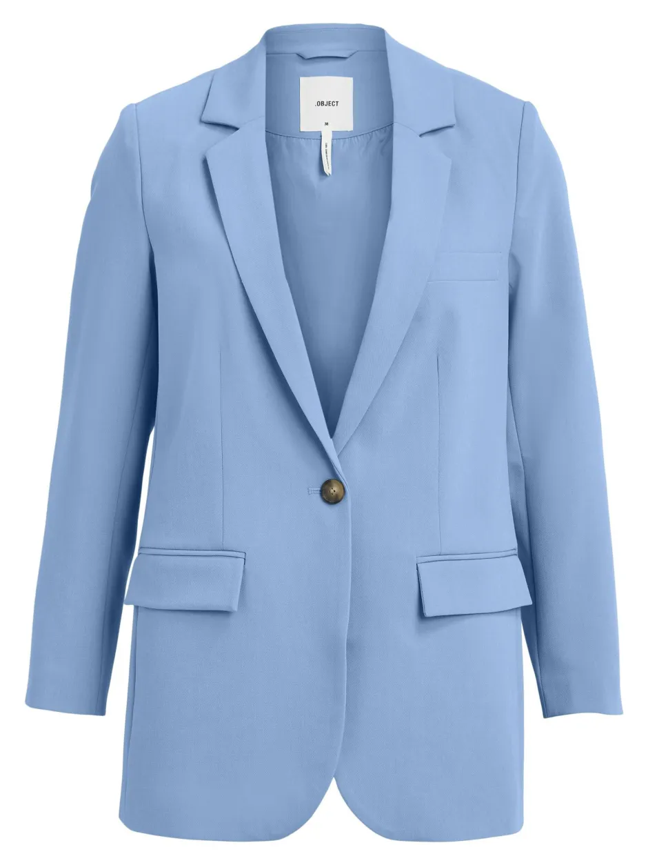 Klassikko bleiseri kääntökauluksella ja kaksi läpällistä taskua. Regular fit.