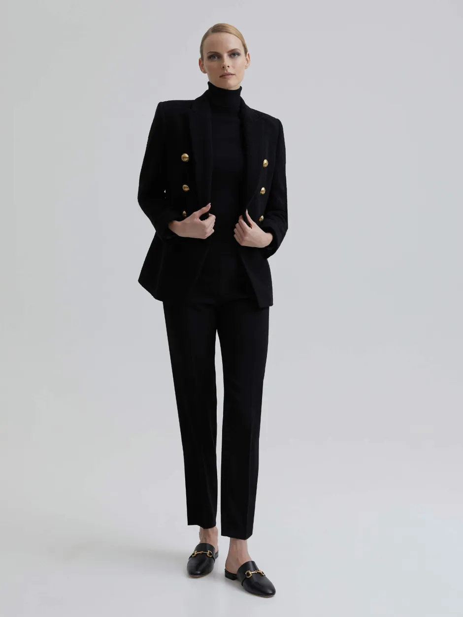 Tyylikäs ja klassinen bleiseri kullanvärisillä napeilla. Upea naisellinen istuvuus ja monikäyttöisesti yhdisteltävissä niin hameiden kuin housujen kanssa. Luottovaate moneen tilanteeseen.