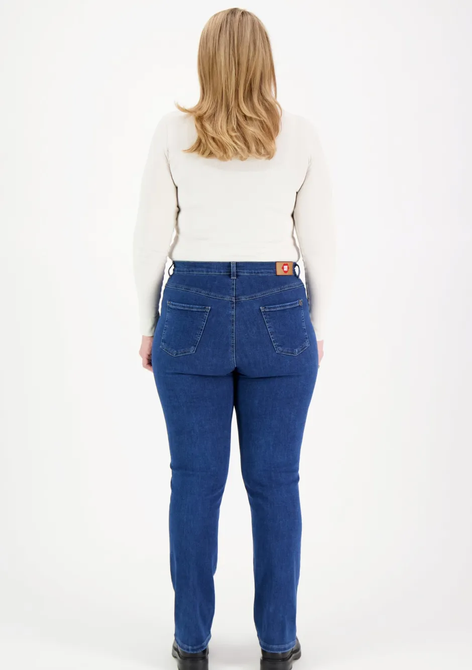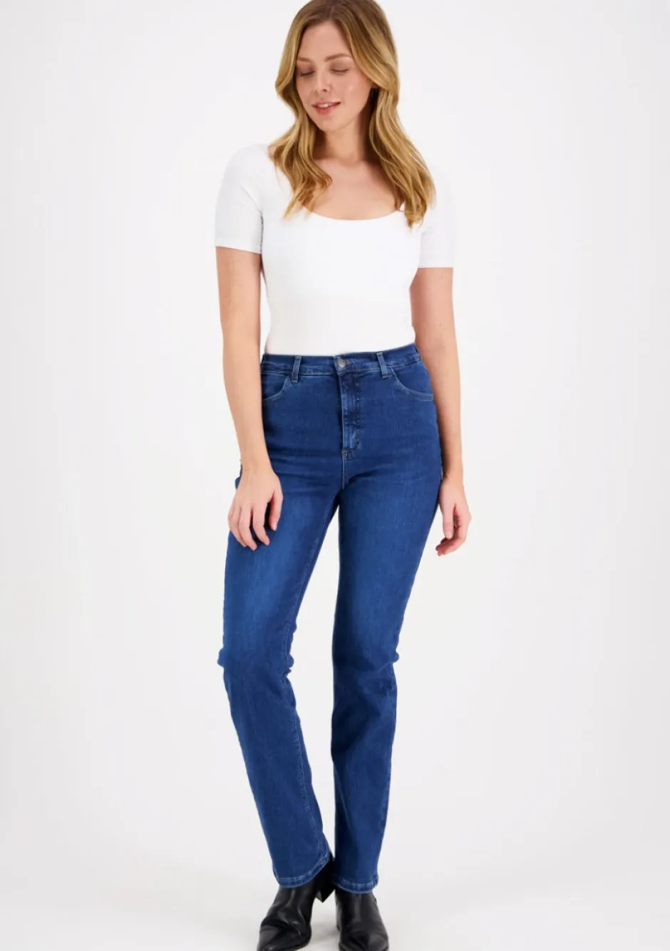 Naisellinen ja korkeavyötäröinen farkkumalli. Vyötärökorkeus on takaa korkeampi kuin edestä, joka parantaa housujen istuvuutta ja lantiolla on myös mukavasti tilaa. Materiaali on erittäin joustavaa joten, jos haluat napakan koon niin valitse yhtä kokoa pienempi kuin normaalisti.