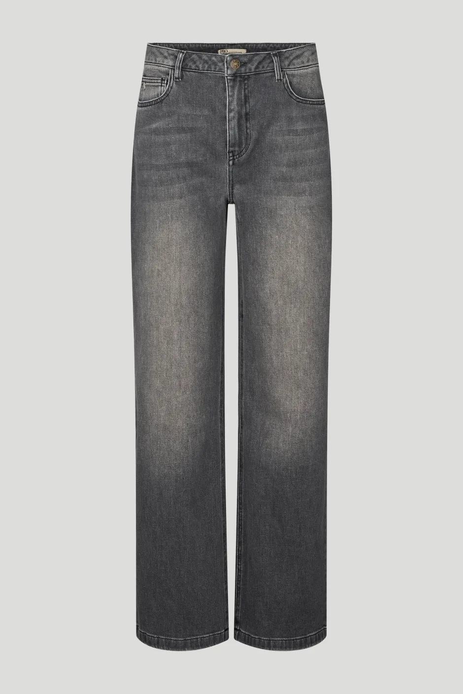 Lia-farkuissa on väljä, suora istuvuus harmaata pestyä denimiä, korkea vyötärö ja klassinen viisitaskuinen malli. Mukava ja ajaton valinta arkikäyttöön.