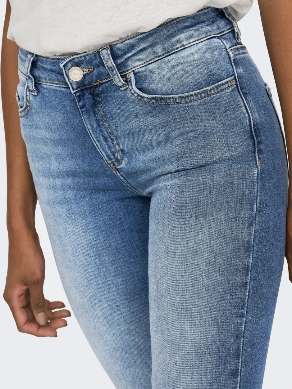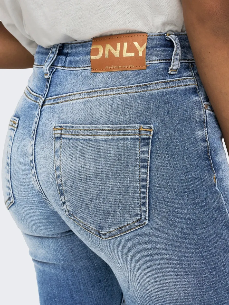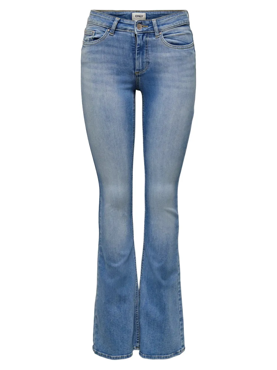Nämä Onlyn farkut yhdistävät ajattoman farkkutyylin ja modernin muotoilun. Normaali vyötärö tarjoaa miellyttävän istuvuuden, ja flared-leikkaus levenee polven alapuolelta antaen rennon, mutta naisellisen siluetin.