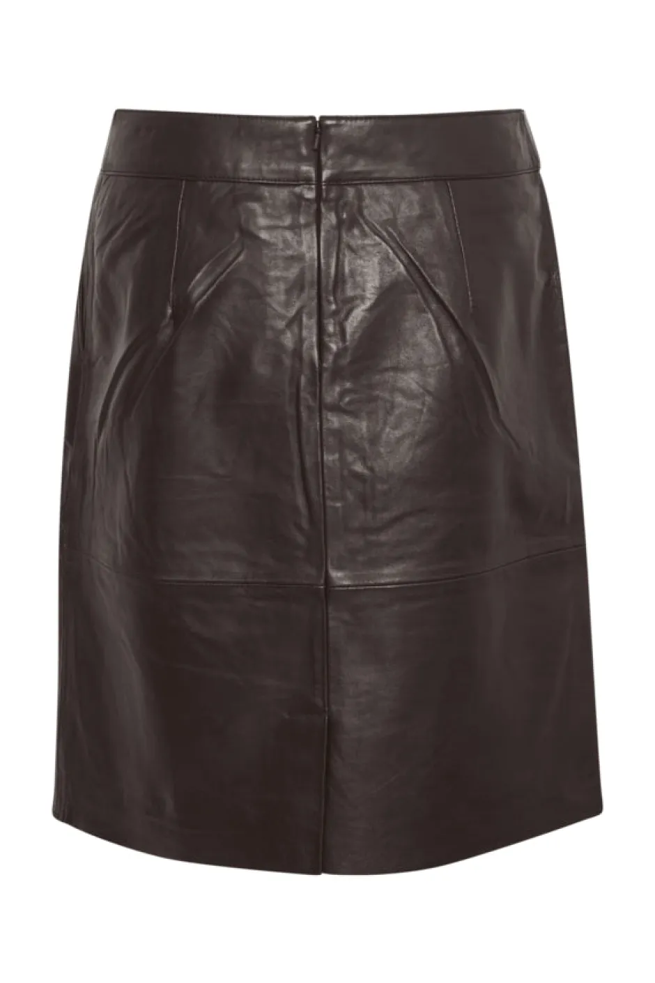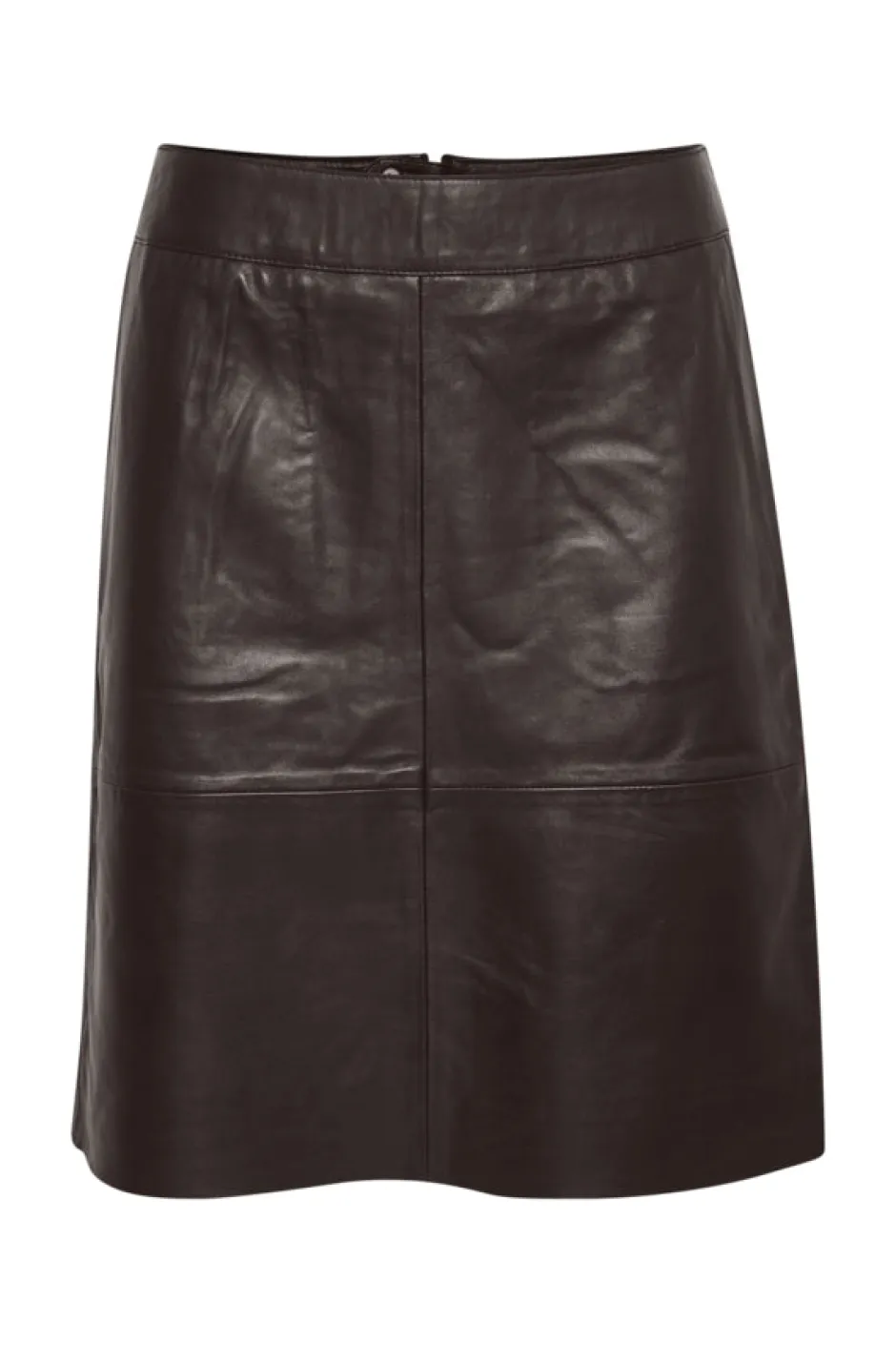 Naisten tyylikäs nahkahame. Normaali vyötärö.