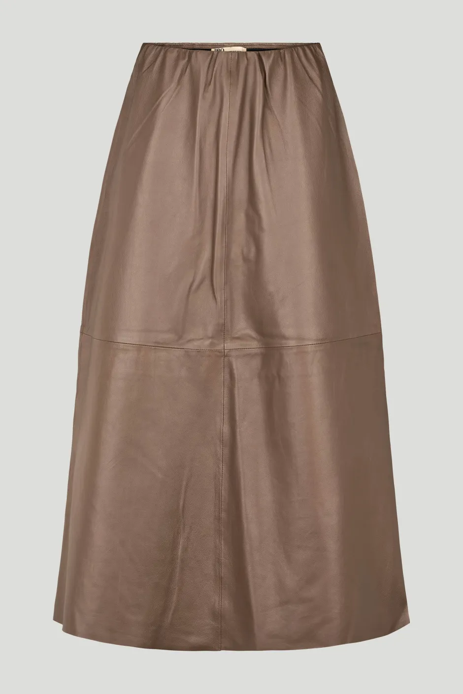 Lapa on A-linjainen nahkahame, jossa on hieman levenevä vyötärö ja joustava vyötärö. Malli yhdistää pehmeän tekstuurin eleganttiin volyymiin.