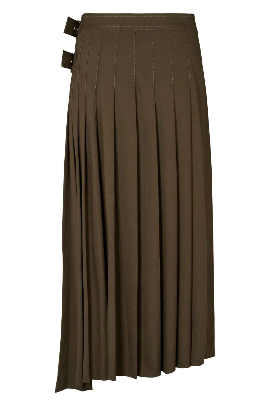 Unima on laskostettu midi-hame, jossa on asynkroninen helma ja näyttävät sivusoljet. Hameessa on rakennetta ja liikettä modernilla otteella.