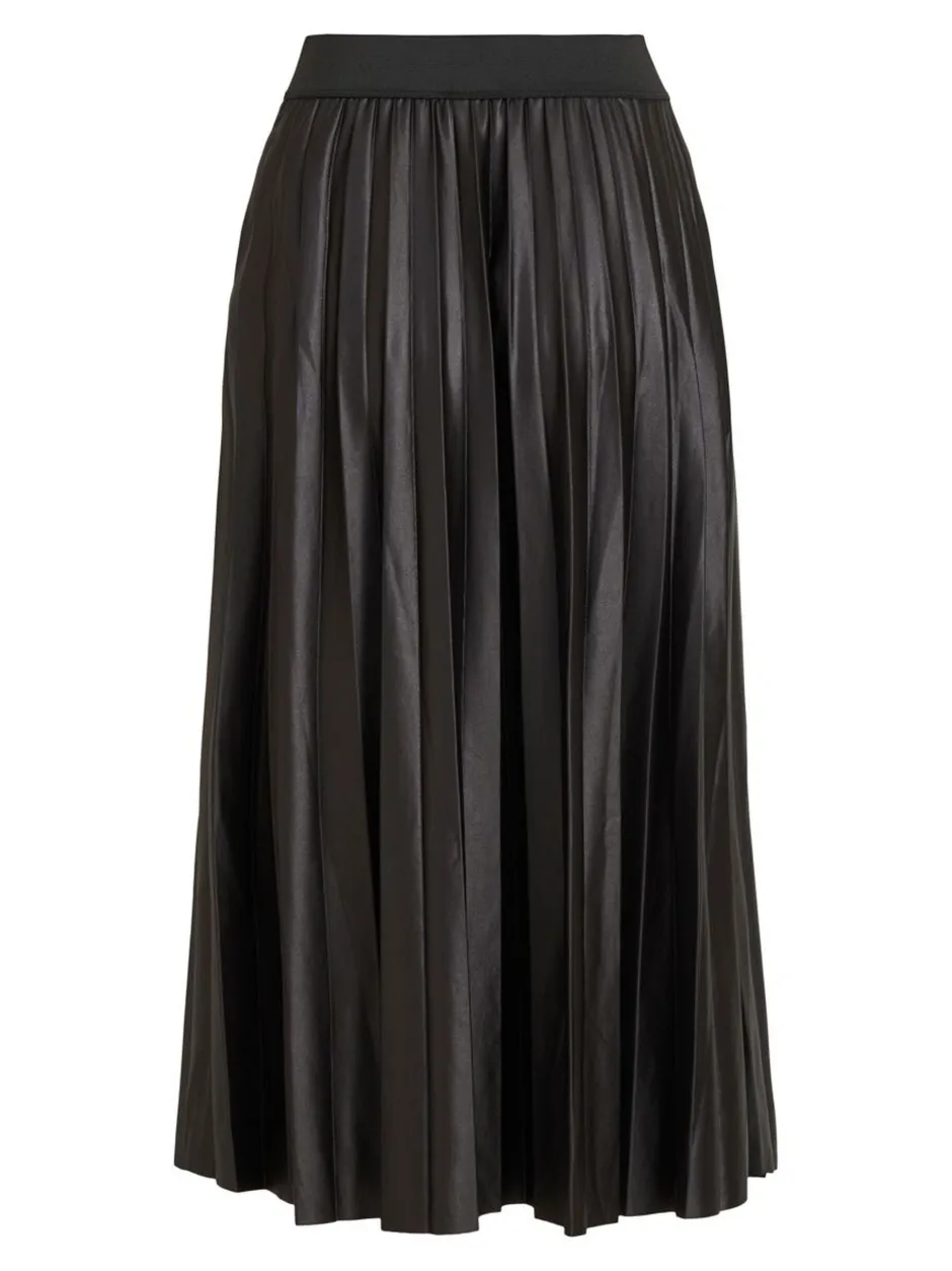 Vilan kaunis midimittainen hame, jossa on kiiltävä kangas. Joustava vyötärönauha ja tyylikäs pliseerattu kangas