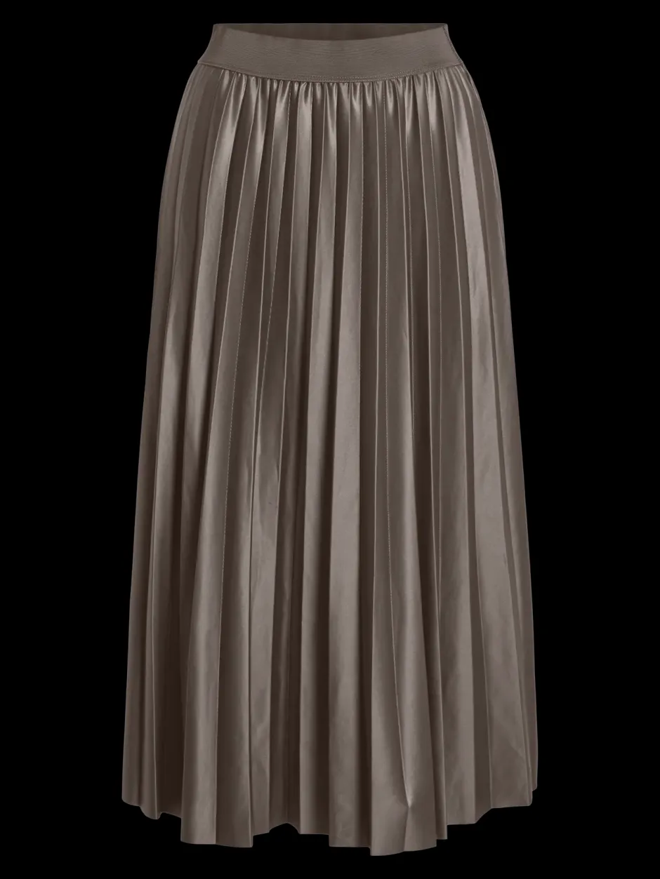 Vilan kaunis midimittainen hame, jossa on kiiltävä kangas. Joustava vyötärönauha ja tyylikäs pliseerattu kangas