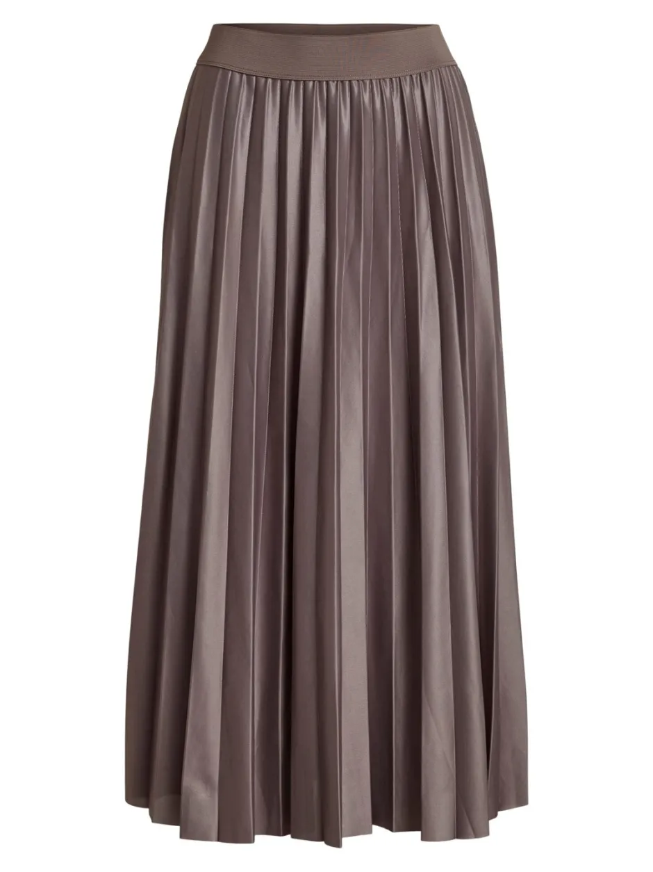 Vilan kaunis midimittainen hame, jossa on kiiltävä kangas. Joustava vyötärönauha ja tyylikäs pliseerattu kangas