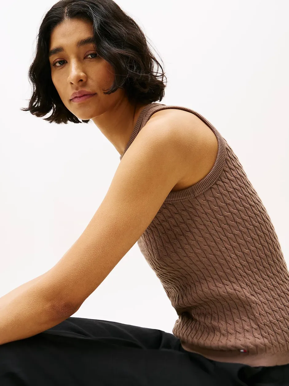 Tyylikäs, vartalonmyötäinen neulemalletti, joka tuo klassisuutta ja eleganssia kesäisiin asukokonaisuuksiin. Hiukseton siluetti ja hienosilkkinen palmikkoneulos tekevät siitä helpon valinnan niin arkikäyttöön kuin rentoihin juhlatilanteisiinkin.