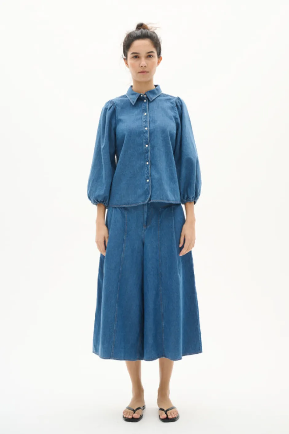 InWearin BallarizIW Culotte -housut yhdistävät modernin muotoilun ja mukavuuden. Näissä sinisissä denim-housuissa on rento, mutta tyylikäs culotte-leikkaus, joka sopii niin arkeen kuin juhlaankin. Kevyt ja hengittävä materiaali tekee niistä täydellisen valinnan lämpimiin päiviin