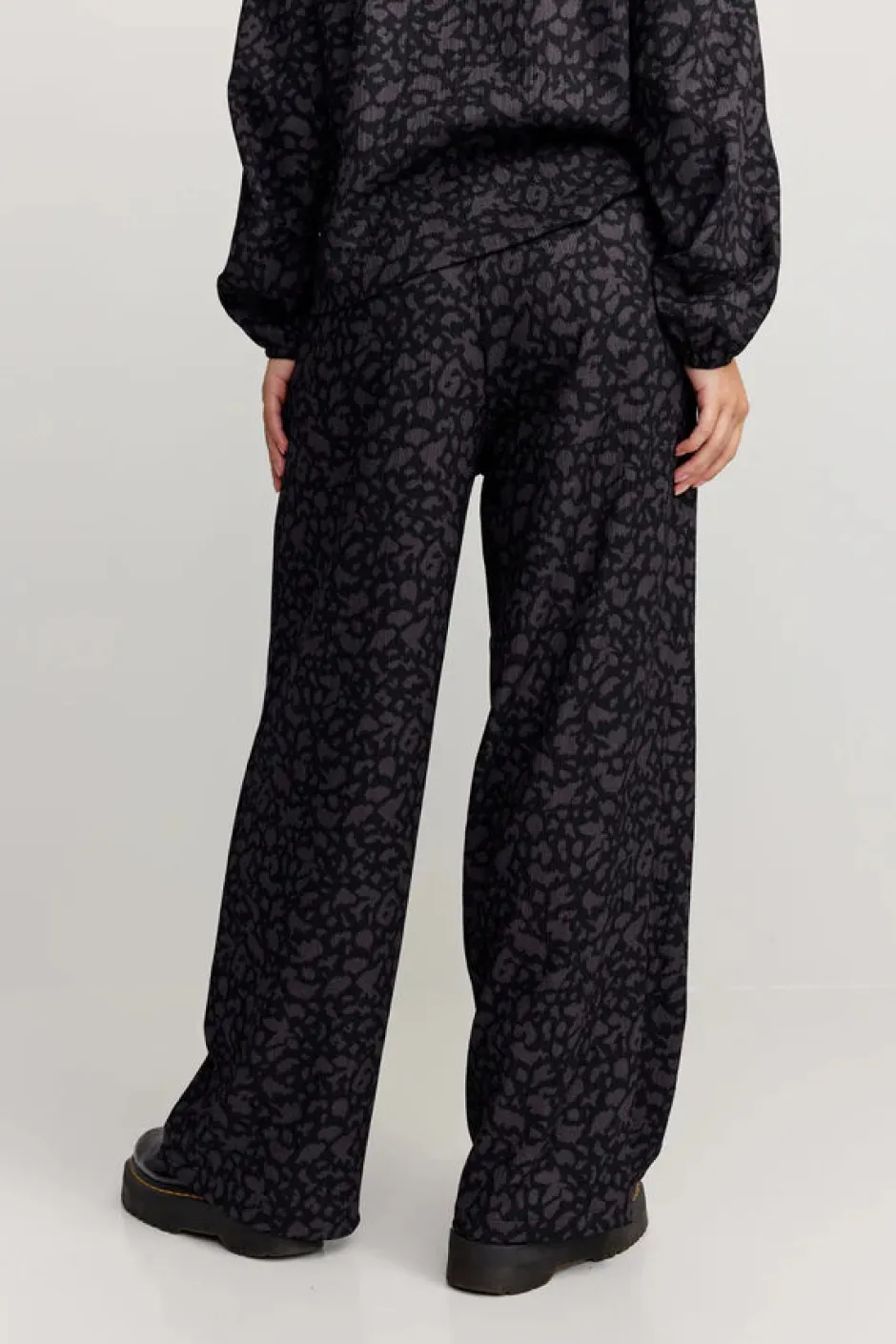 Kokokuvioiset normaalivyötäröiset housut, joissa on normaali istuvuus ja suorat lahkeet.