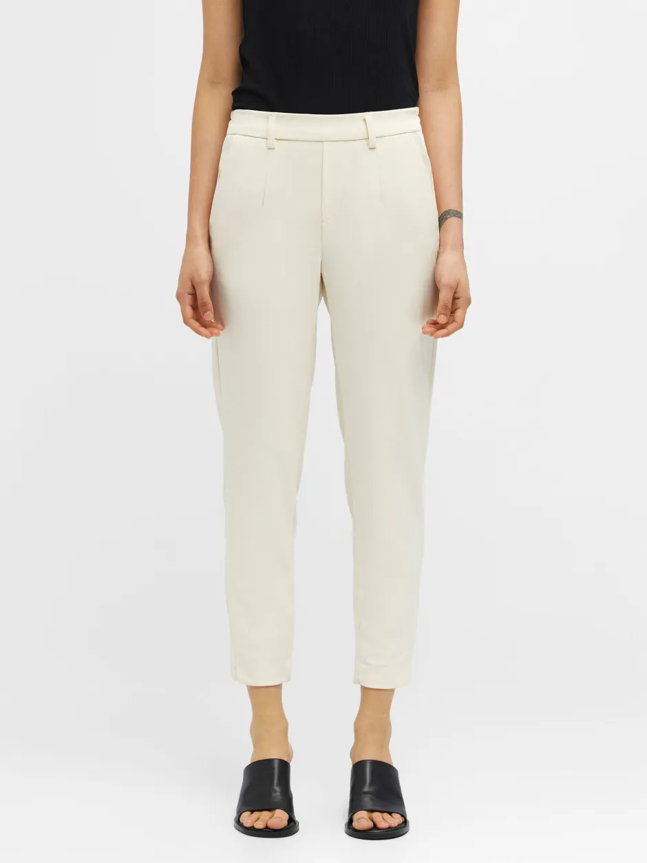 Objectin tyylikkäät nilkkamittaiset housut. Siisti ja suora malli, jossa on hieman kapeneva lahje. Sivutaskut, takana viistotaskut sekä vyötäröllö vyölenkit.