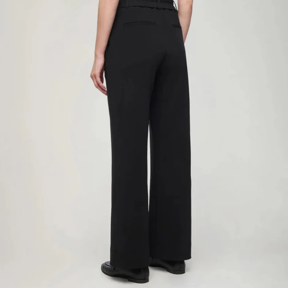 Mustissa Mereta-housuissa on suorat lahkeet ja korkea vyötärö. Leveässä vyötärökaitaleessa on jousto housun takaosassa, mikä takaa mukavan istuvuuden. Housujen materiaali on kauniisti laskeutuvaa, paksua trikoota ja kokonaisuuden viimeistelee vyötärön etuosan aito helmiäisnappi.