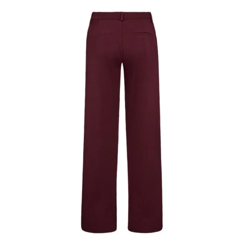 Naisten leveälahkeiset jerseyhousut. Housuissa on kiinnityksenä vetoketju ja nappi .