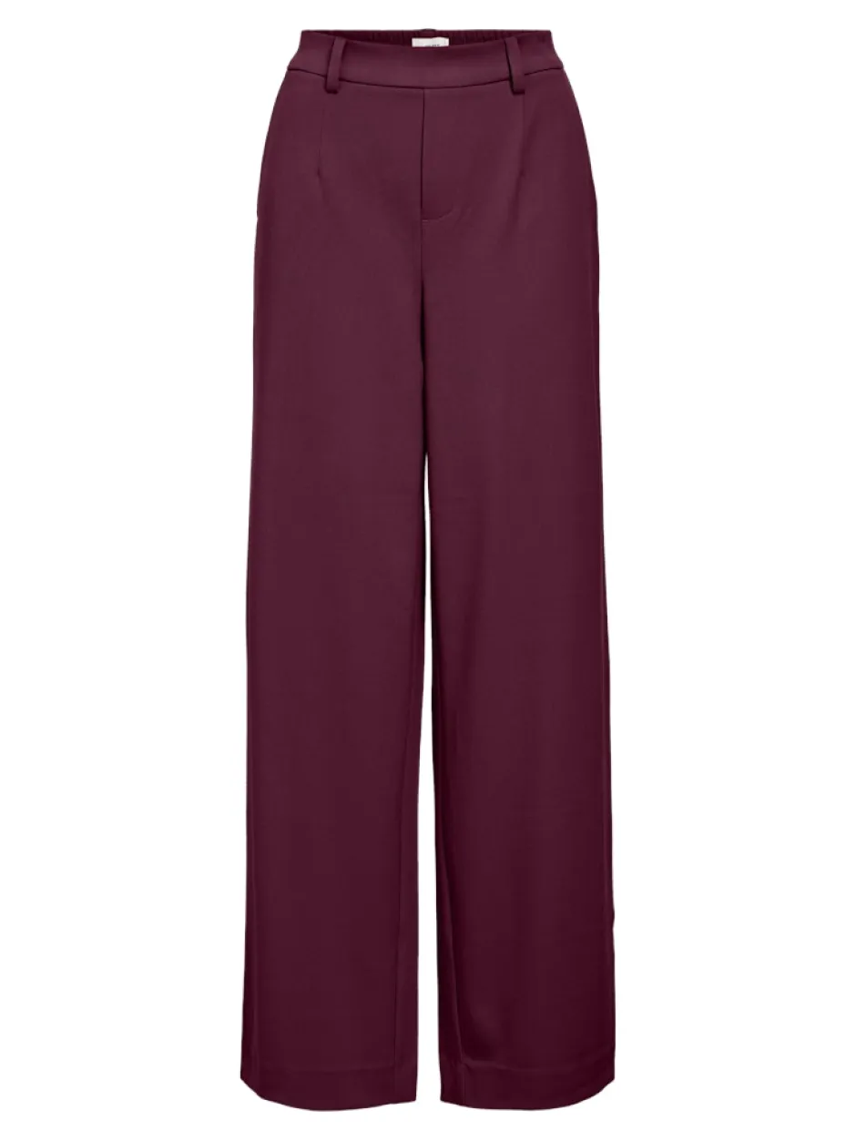 Naisten leveälahkeiset, nilkkapituiset housut, normaali vyötärön korkeus, vyötäröllä vyölenkit. Edessä laskokset