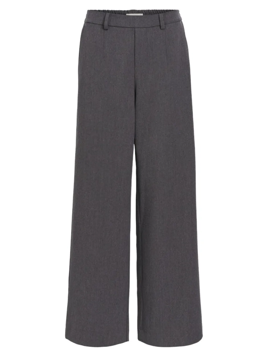 Naisten leveälahkeiset, nilkkapituiset housut, normaali vyötärön korkeus, vyötäröllä vyölenkit. Edessä laskokset.