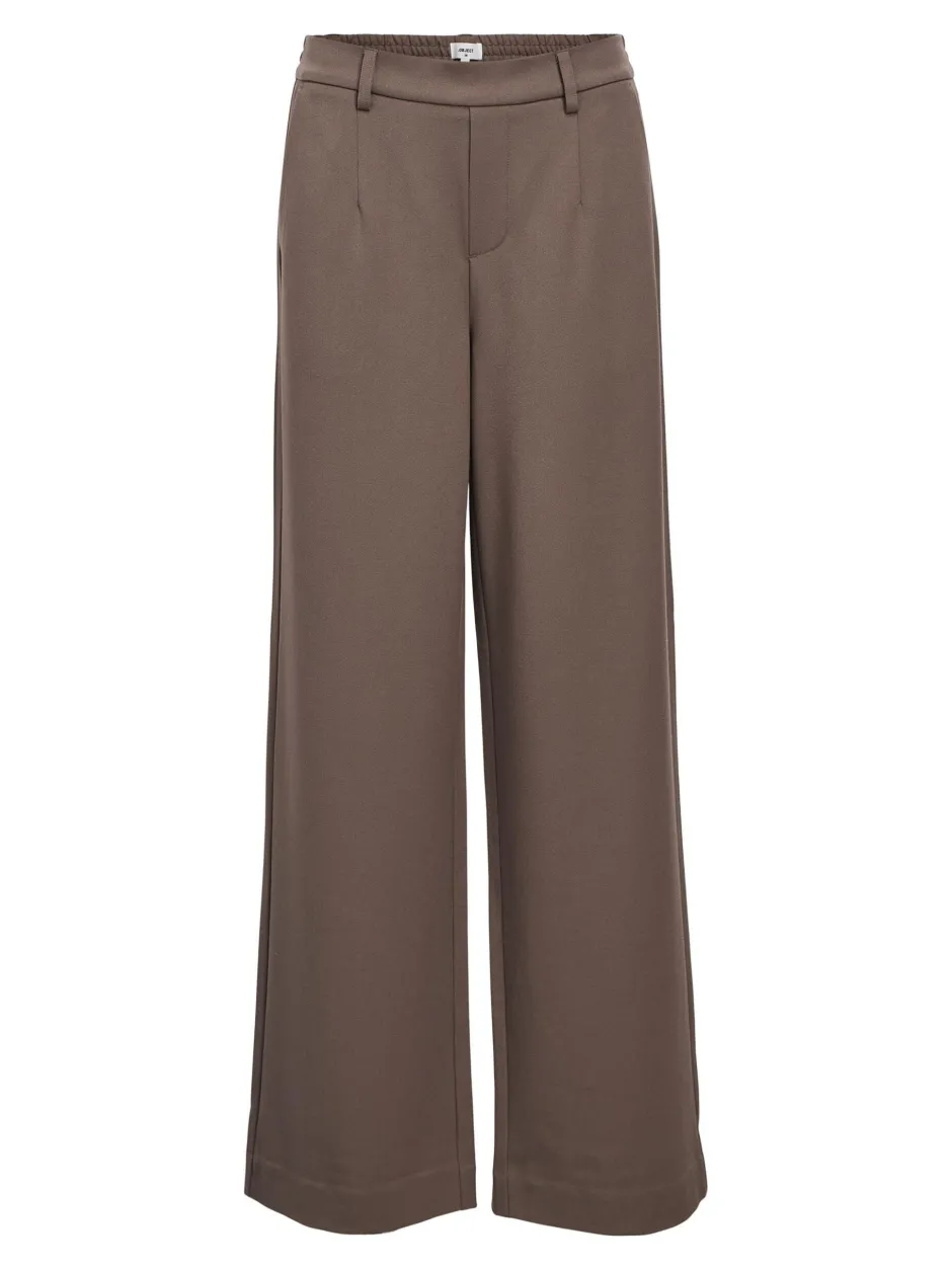 Naisten leveälahkeiset, nilkkapituiset housut, normaali vyötärön korkeus, vyötäröllä vyölenkit. Edessä laskokset..