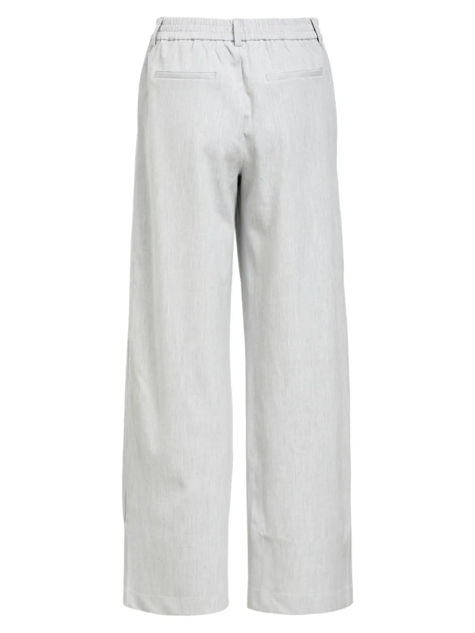 Naisten leveälahkeiset, nilkkapituiset housut, normaali vyötärön korkeus, vyötäröllä vyölenkit. Edessä laskokset..
