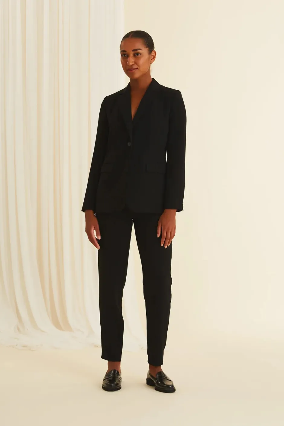 Kenzie-jakku on klassisen ajaton ja tyylikäs. Bleiserin materiaali on innovatiivista triasetaatin ja kierrätyspolyesterin sekoitetta; selluloosatriasetaatti valmistetaan puumassasta. Laadukas kangas laskeutuu kauniisti ja kestää hyvänä pitkään – materiaali ei rypisty eikä nyppyynny helposti, joten sen huolto on vaivatonta. Kenzie kuuluu Staples-mallistoomme, jonka tuotteet on suunniteltu pitkäikäisiksi luottovaatteiksi, joita on kätevä yhdistellä erilaisiin asuihin sesongista toiseen.