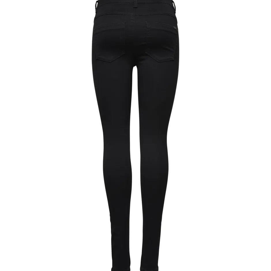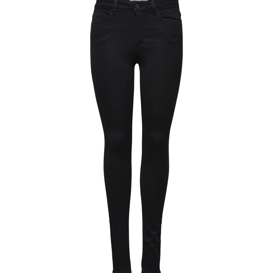 Onlyn mustat tyköistuvat farkut joustavalla materiaalilla. Vyötäröllä vyölenkit. Edessä ja takana taskut.