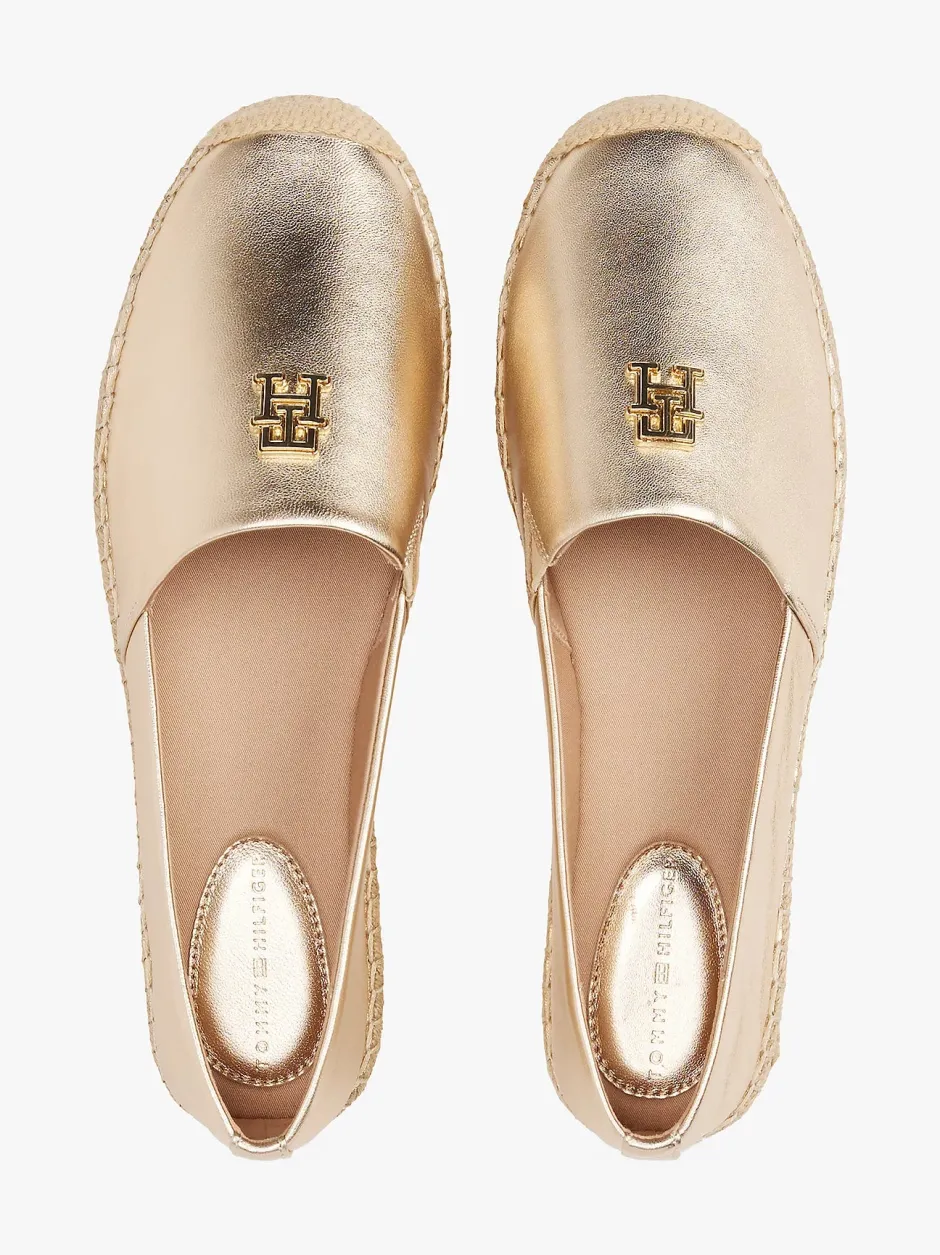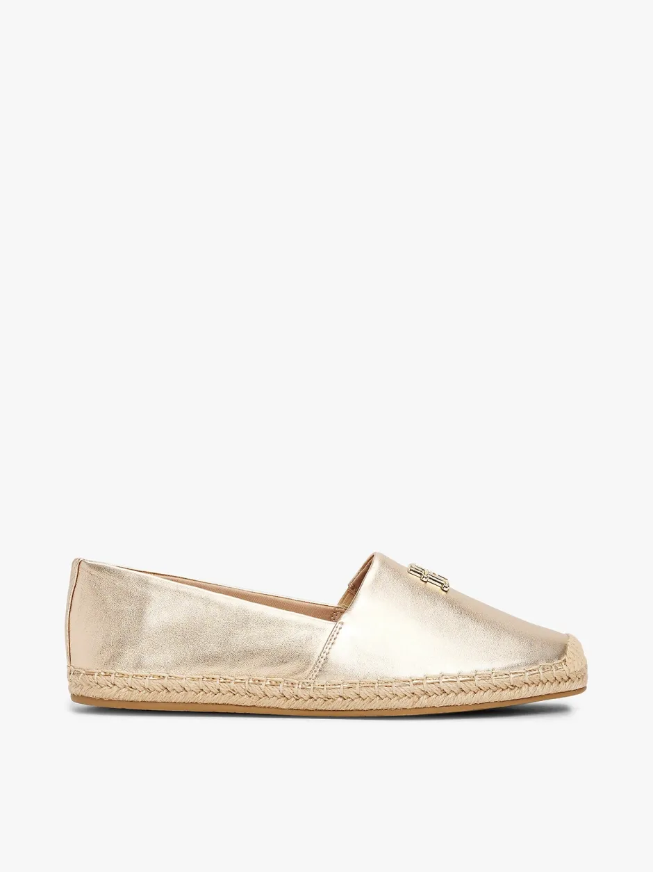 Nämä espadrillit on vaivattomasti lumoava valinta aurinkoisiin päiviin, ja ne on valmistettu pehmeästä nahasta, jossa on valoa vangitseva metallipinta.