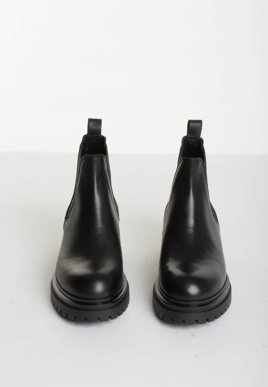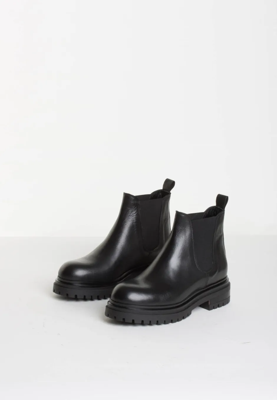 Bukelan tyylikkäät nilkkurit, jotka on valmistettu laadukkaasta nahasta. Midimittainen varsi, jonka sivuilla on joustavat kuminauhalevennykset. Paksu ja kuvioitu kumipohja.