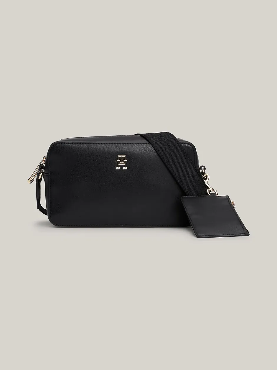 Tämä tyylikäs ja rento laukku on valmiina kaikkeen, sisältäen huomaamattoman brändäyksen hihnassa ja kiillotetun TH-monogrammin laatan